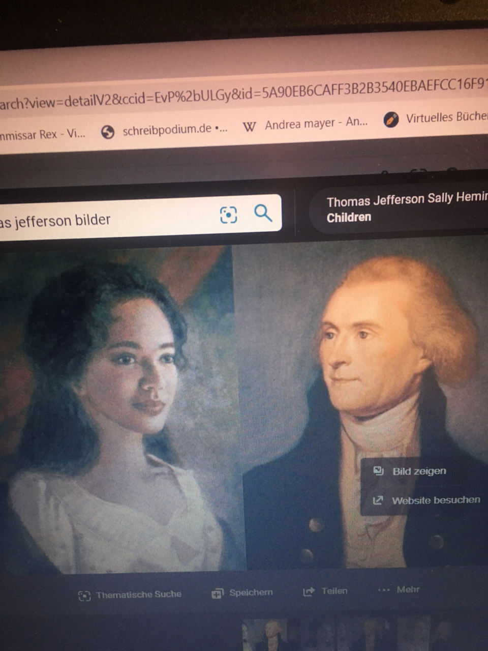 vier freiliess: die schöne Sally Hemings und drei Kinder - die von ihm und ihr stammten! Historiker sind sich nicht